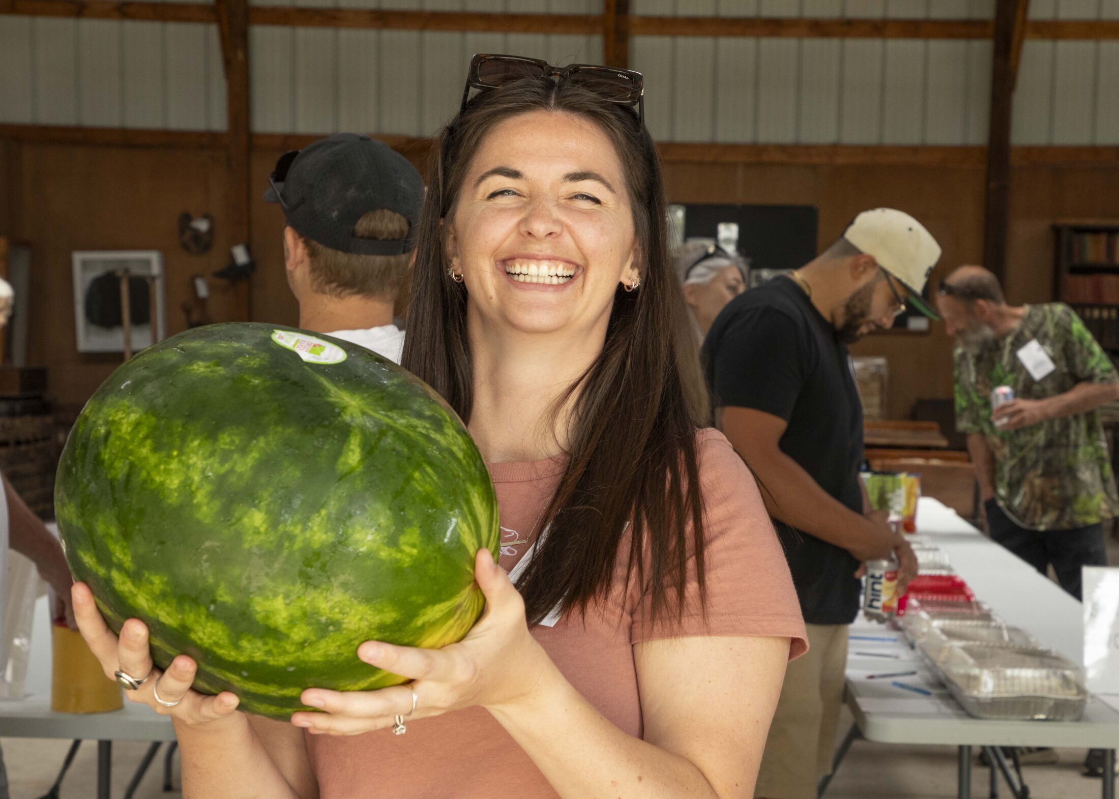 Ana guessing the weight of the watermelon in kilograms.